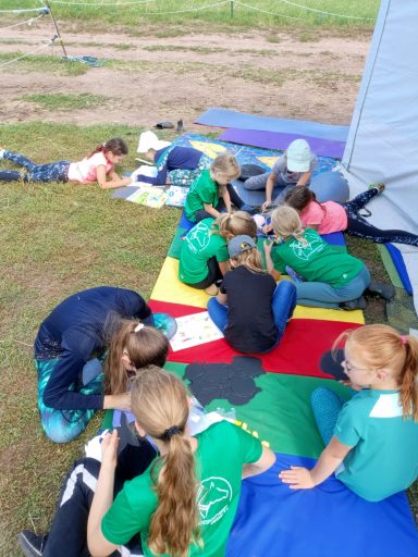 Die Kinder mussten einen coolen-gruseligen-Parcours überqueren und so manche geheimnisvolle Aufgaben erfüllen um sich die Buchstaben für das Lösungswort zu erhalten. - Kemberg wir kommen – Zwischendurch wurde sich so richtig erschreckt, aber immer mit ganz viel Spaß.